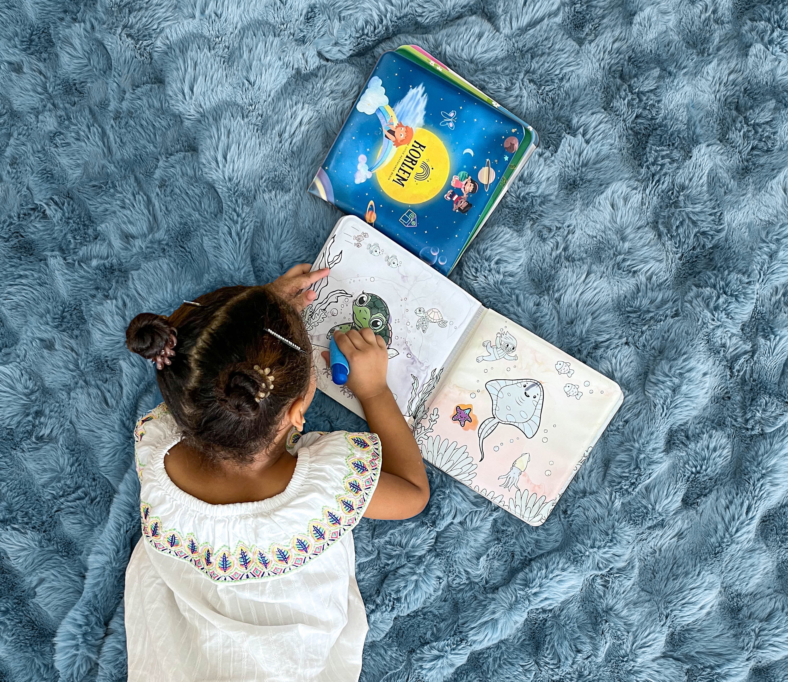 Avec quelques gouttes d’eau, votre enfant fait apparaître pieuvres, poissons et créatures marines hautes en couleur.